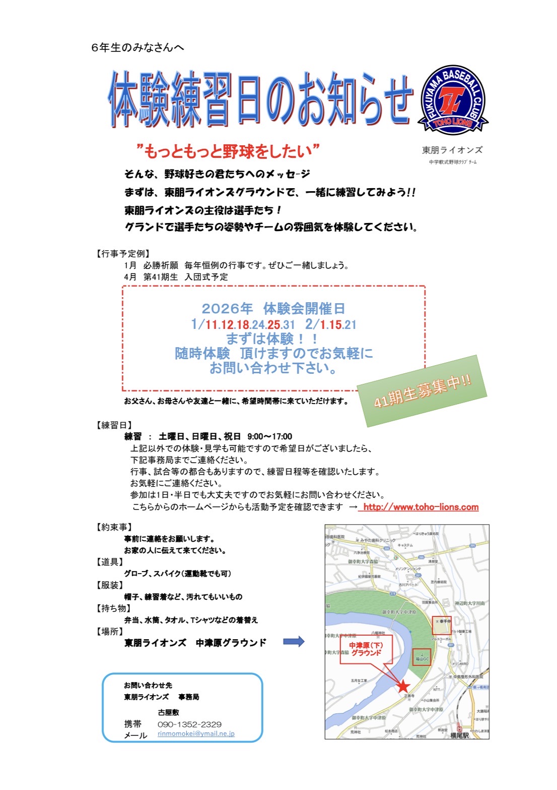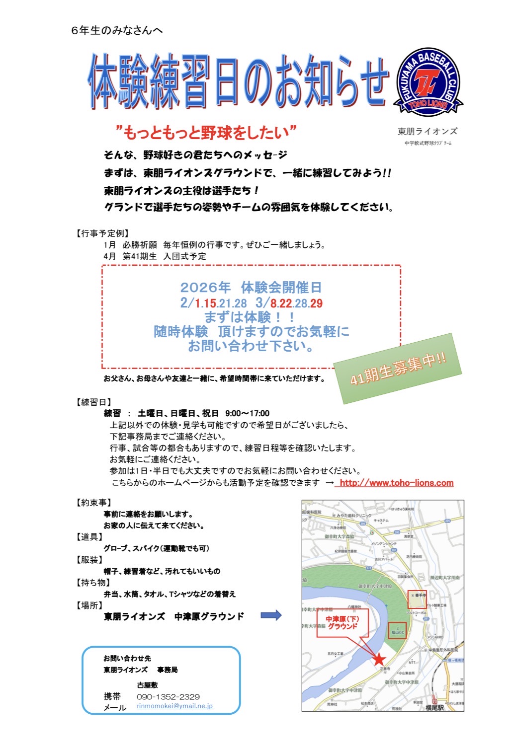 2026年 体験練習日のお知らせ!!