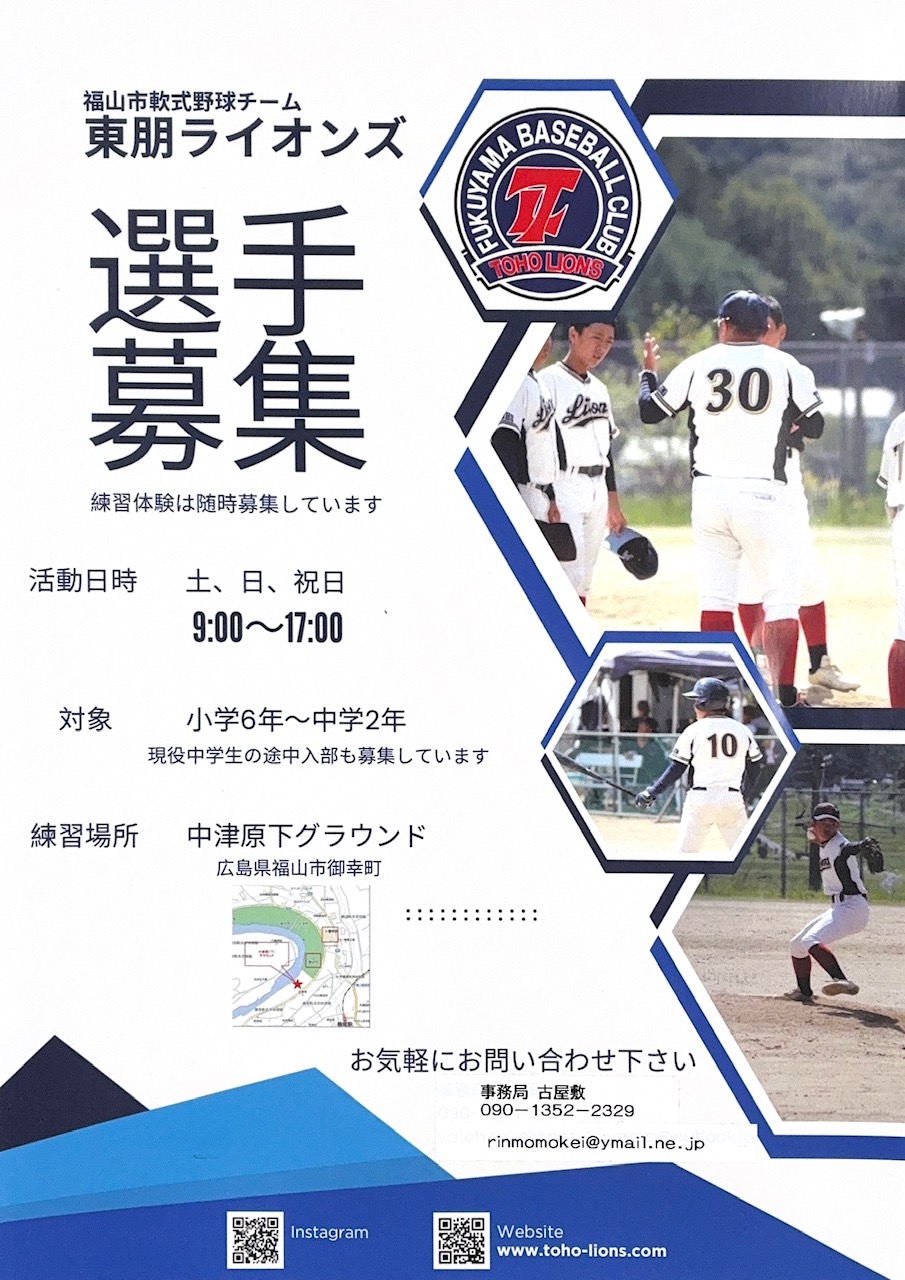 また、ここ数年、卒団選手の進路も 広島県、島根県、山口県、香川県、岡山県と他県への進路が盛んになっております。