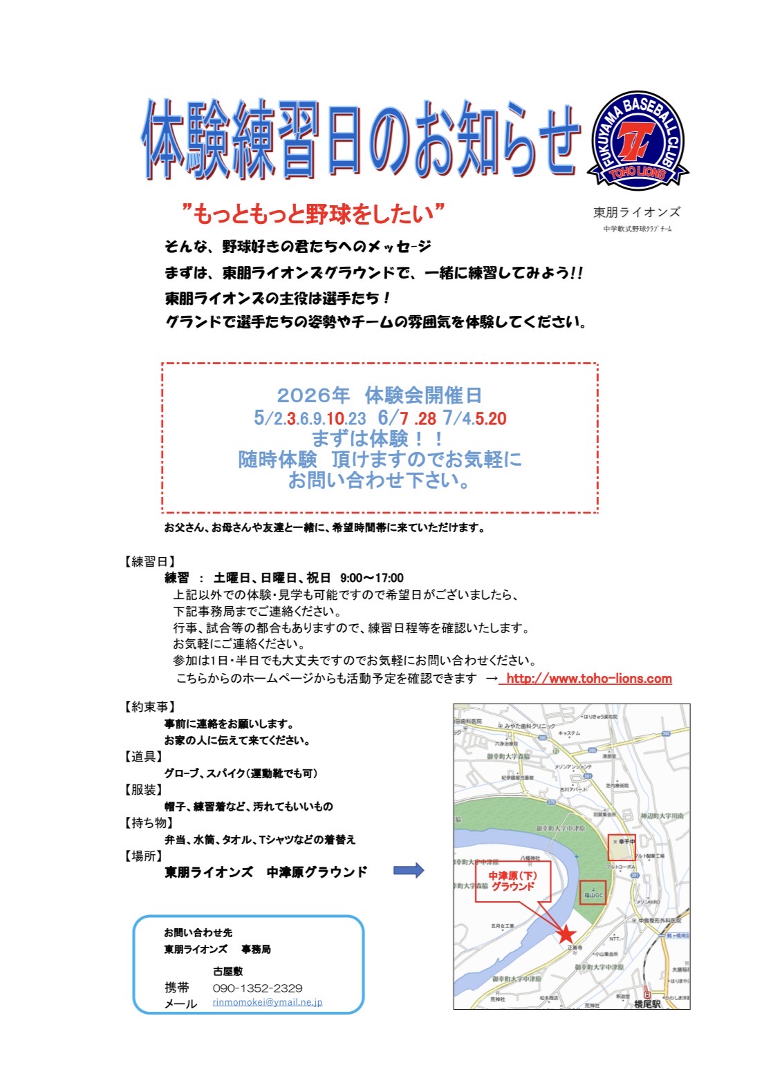 体験は随時受け付けておりますので、中学軟式野球に興味のある方は是非ご連絡ください。
